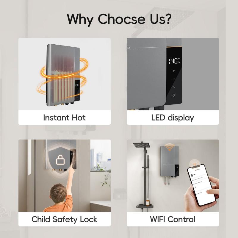 Experience 24-hour instant hot water with advanced safety features, including high-temperature and dry heating protection.