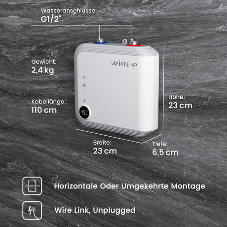 Elevate your home with this sleek Wintemp Under-Counter Water System, designed for modern kitchens that value both functionality and aesthetics. This integrated system combines a tankless electric water heater, advanced water filtration unit, and chiller, delivering purified hot and cold water on demand.