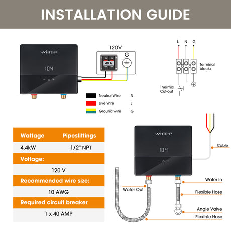 KJU144 Black 120V / 4.4KW Point-of-Use Electric Tankless Water Heater